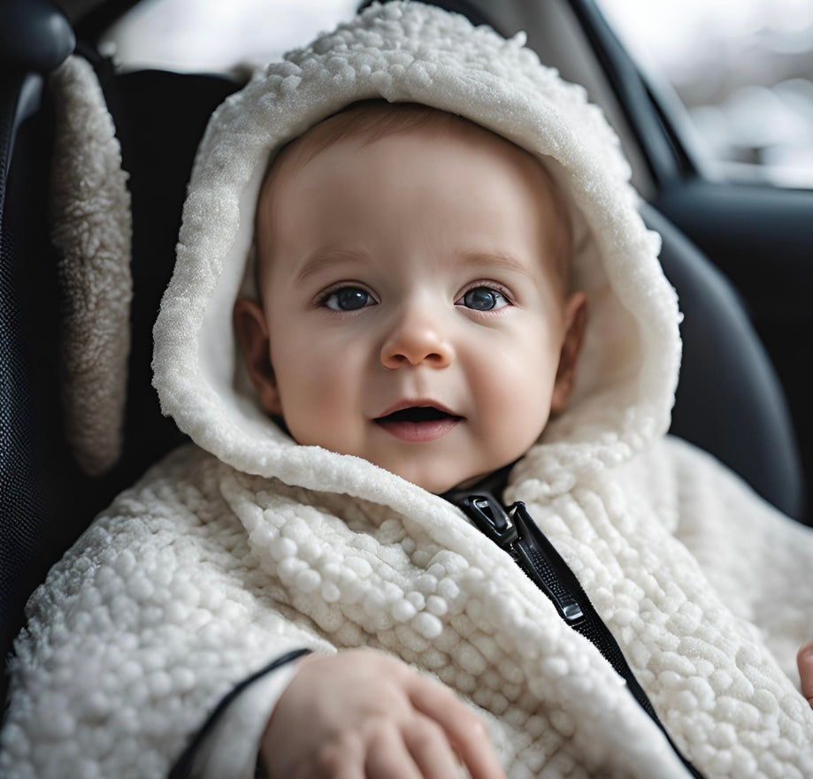 Le manteau crée un espace entre le harnais et le corps de l’enfant, ce qui peut réduire l’efficacité de la ceinture en cas d’accident. Le poncho, lui, permet de bien ajuster le harnais tout en gardant bébé au chaud et en sécurité.